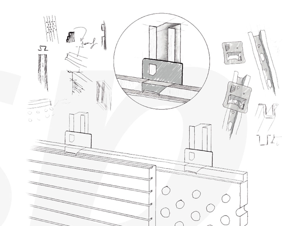 - The system of wooden strip + cramp consists on the installation of panels through wooden strips and cramps
