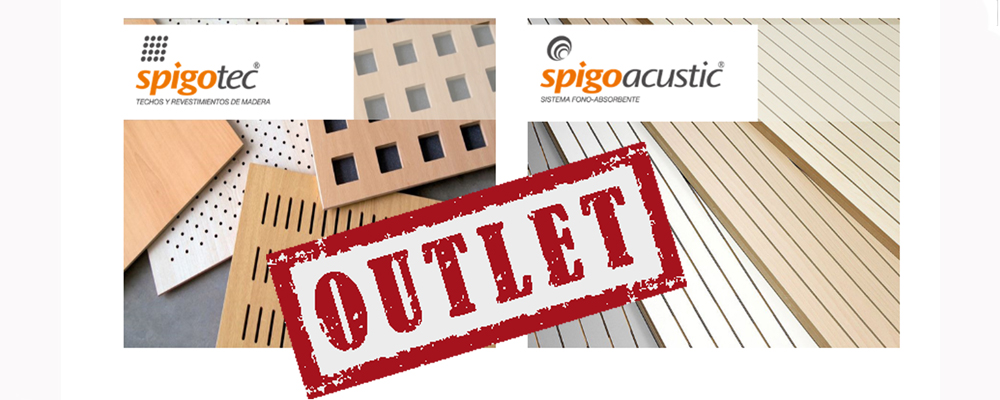 Spigogroup lanza su outlet de paneles acústicos de madera 002 Paneles acústicos baratos discounted acoustic panels The acoustic panels offered by Spigogroup at its factory outlet are all part of existing stock, so they can be served right away while stocks last. Consult the Outlet section of the Spigogroup website for currently available models, finishes and technical specifications of each model as well as the number of panels available and price.