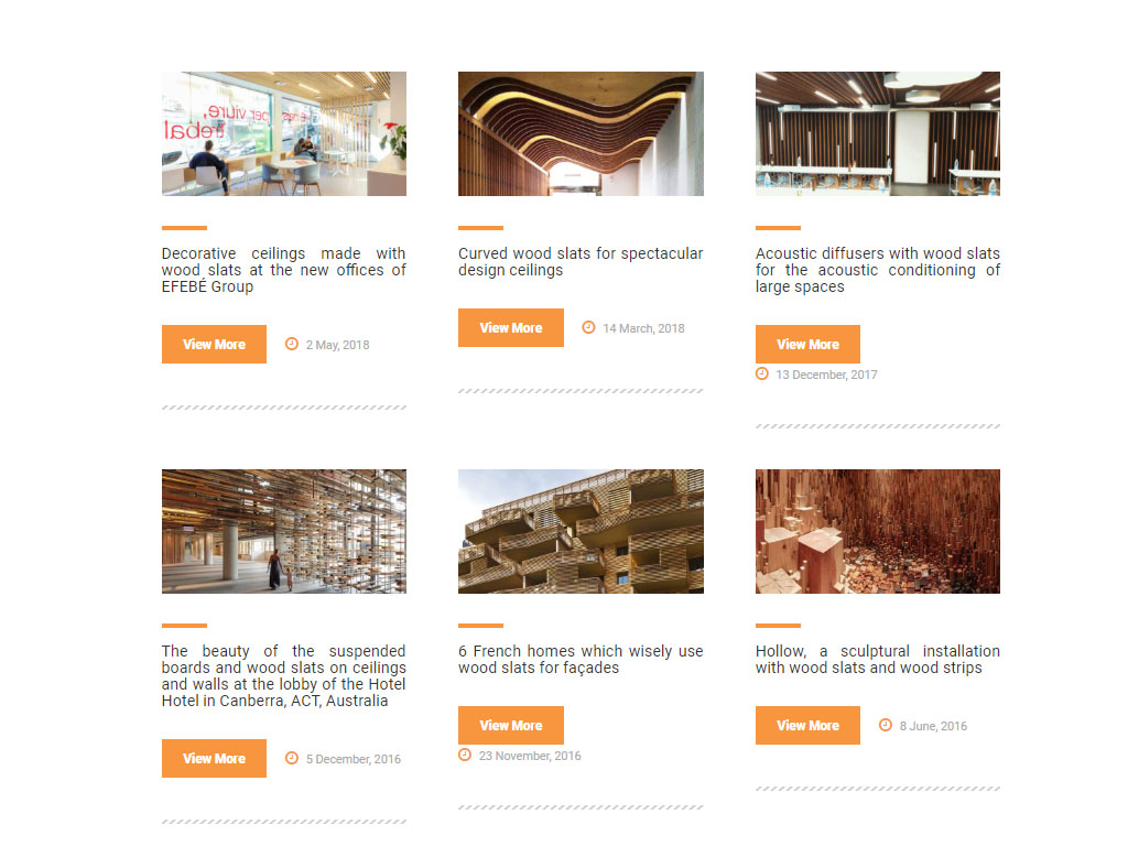 Professionals are looking more and more articles and information about wood slats because wood slats they are a decorative solution with a great demand nowadays; they are trendy. The slat panels are featured on ceilings and walls in classrooms, dining rooms, offices, shops, waiting rooms, offices and other rooms, in Spain and in other countries of the world. In this blog we have written a lot about Spigoline solid wood slats and their characteristics, but also other projects, in more distant places, that caught our attention for their beauty.