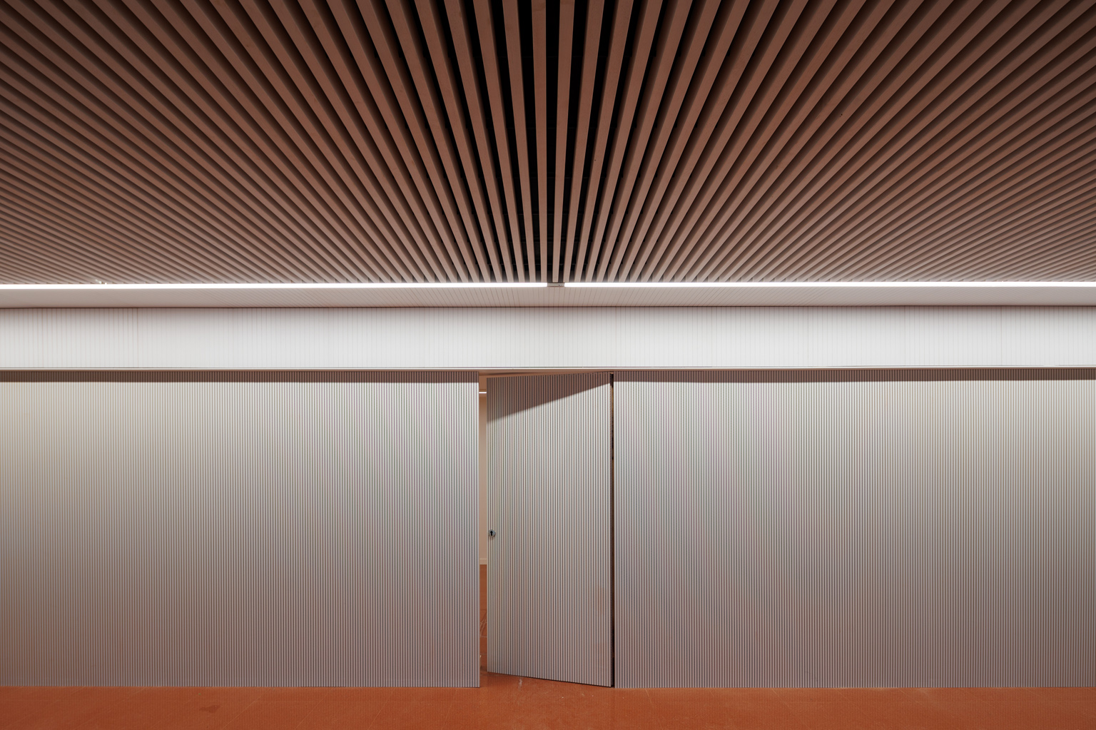 – Interior wood cladding at the new Práxedes Mateo Sagasta Secondary School in Logroño