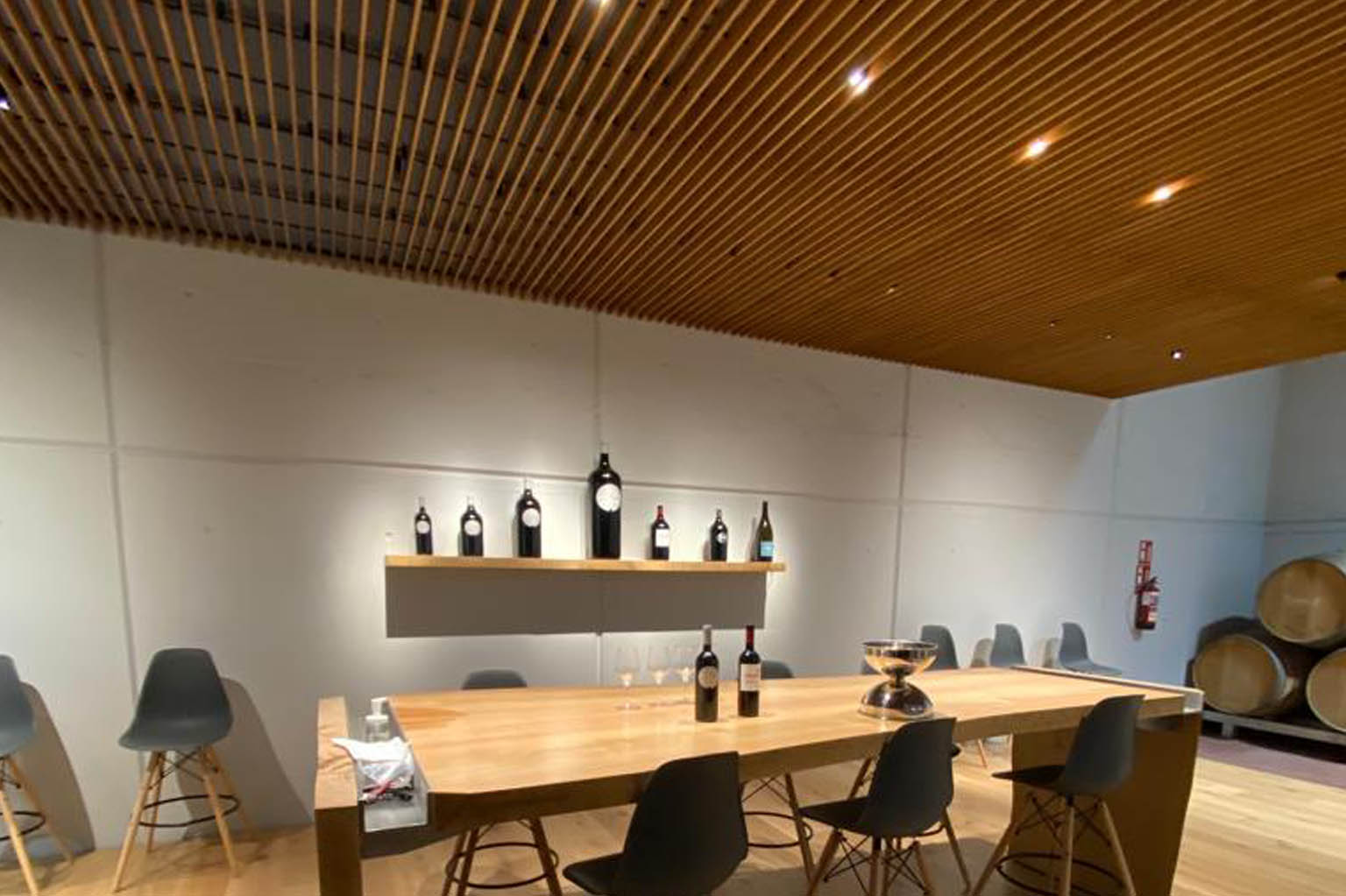 Los falsos techos de lamas de madera han encontrado en las estancias de las grandes bodegas uno de sus emplazamientos estrella. Acentúan el prestigio de la marca que acogen, transmitiendo serenidad, calidez y elegancia. Es el caso que traemos hoy a nuestro blog.