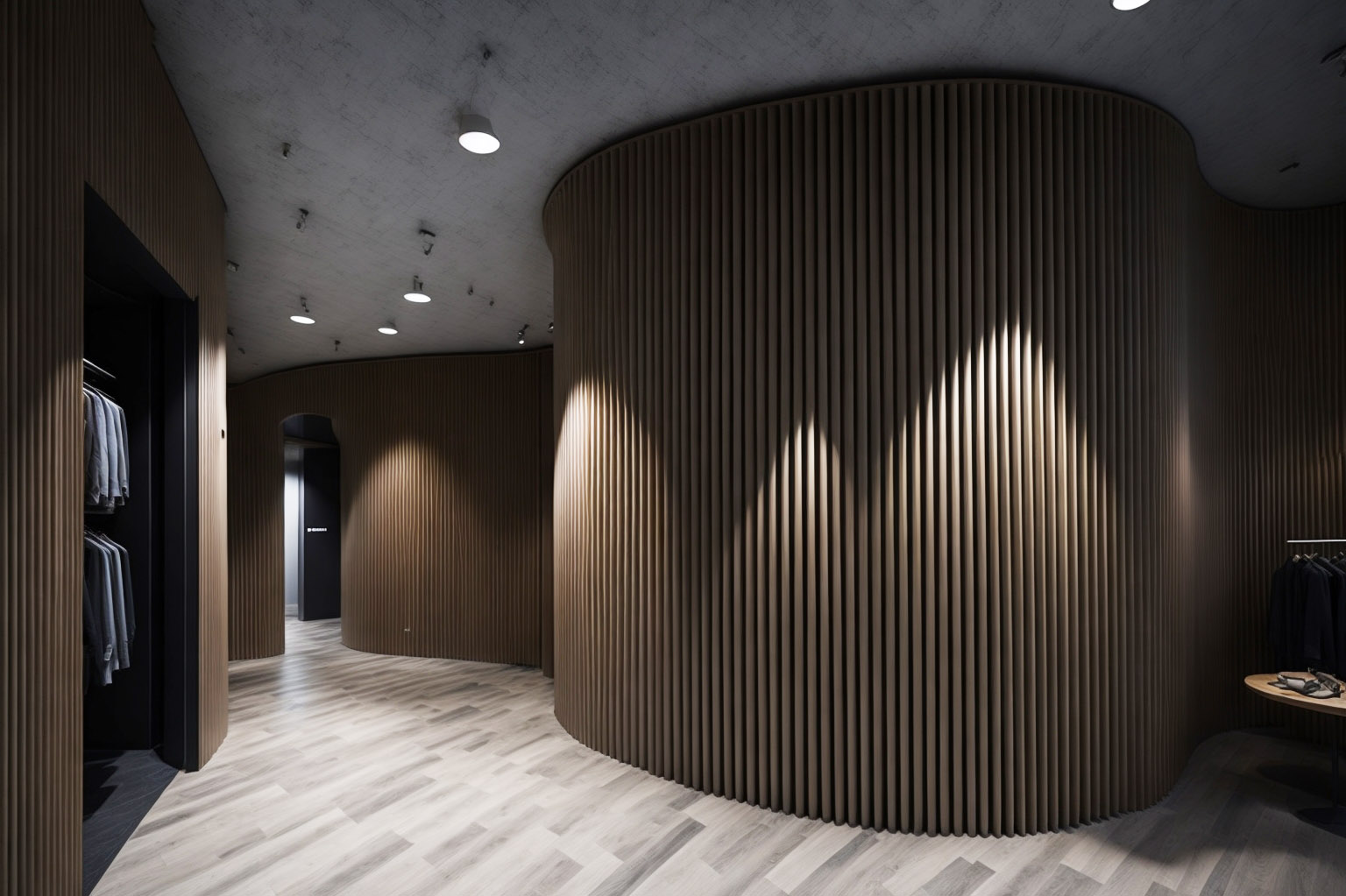 Les revêtements flexibles en lames bois facilitent le conditionnement acoustique dans certains projets qui, en raison de leur design, obligent à travailler sur des surfaces incurvées.