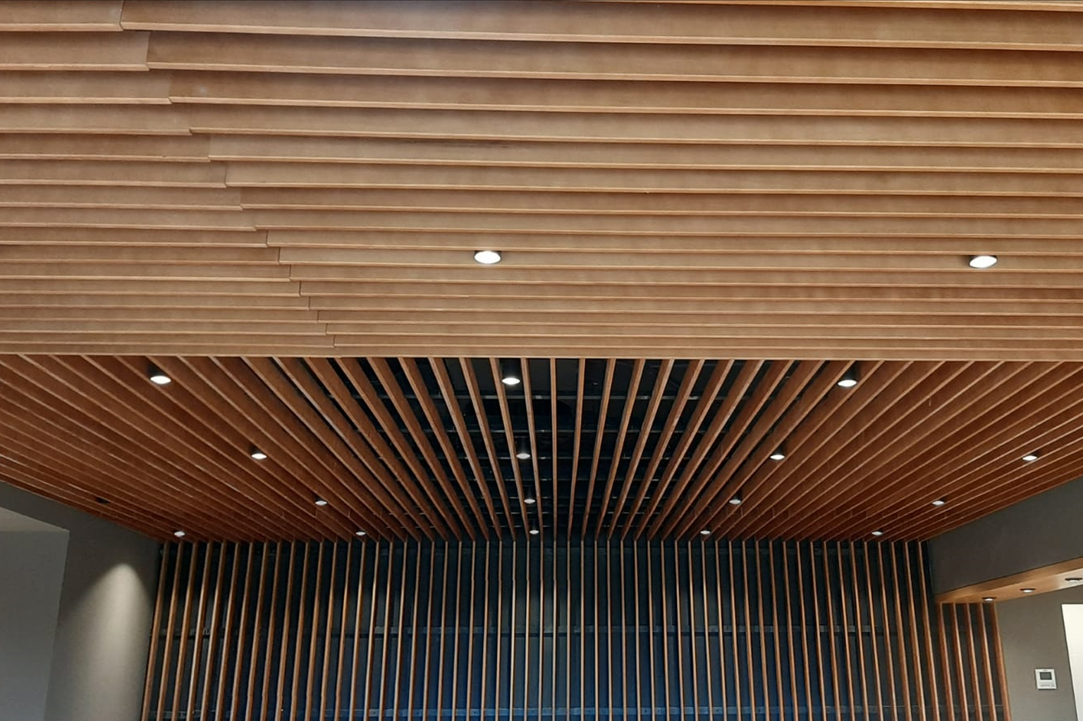 – Paneles de listones de madera para la decoración de techos y paredes de oficinas