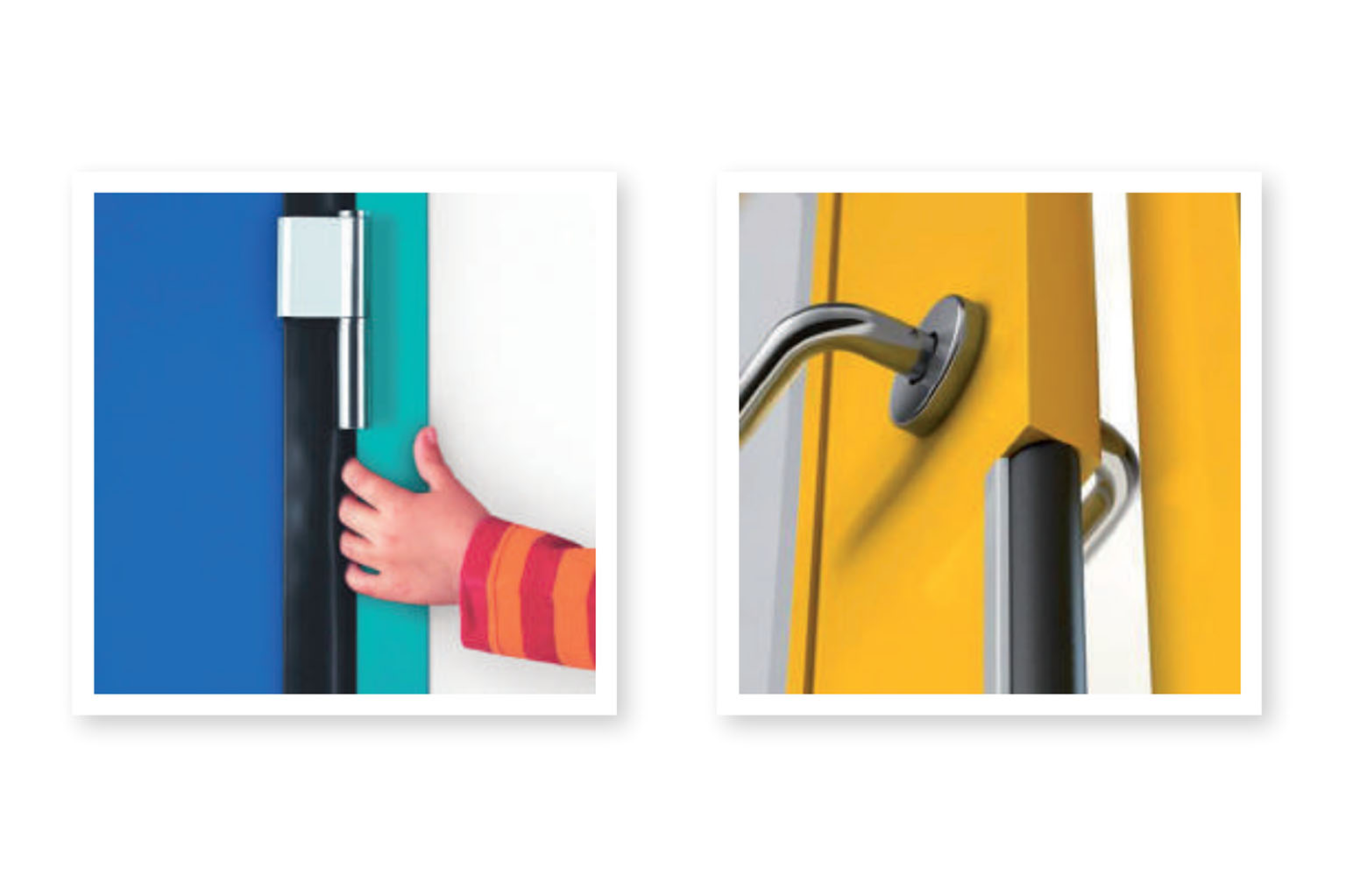 Las puertas antipinzamiento de dedos para colegios y guarderías son puertas especialmente diseñadas para evitar este tipo de accidentes tan habituales entre los más pequeños. A simple vista se trata de puertas totalmente normales, pero con una pequeña diferencia en el tramo donde se producen los pinzamientos, desde el suelo hasta una altura aproximada de 1,10 m. En esa zona, estas puertas presentan bandas de caucho/goma antipinzamiento, tanto en el lateral del cierre como en el de la bisagra, que se deforman ante una mano atrapada evitando la presión de la puerta.