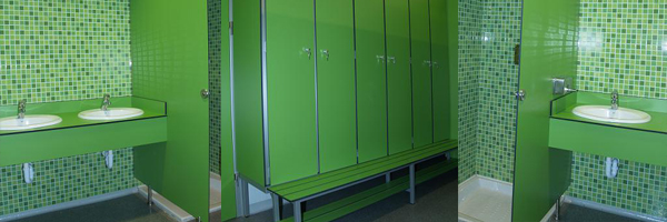 Gracias al panel fenólico con el que están fabricadas, las cabinas fenólicas y las taquillas fenólicas ofrecen una resistencia especial a la humedad lo que las convierte en los elementos perfectos para instalaciones deportivas con ambientes húmedos. Además ofrecen una gran variedad de acabados que las cabinas fenólicas y las taquillas fenólicas pueden compartir con otros elementos del mobiliario del gimnasio o vestuarios también fabricados con panel fenólico como las mamparas fenólicas, las encimeras fenólicas de los lavabos o los bancos fenólicos.
