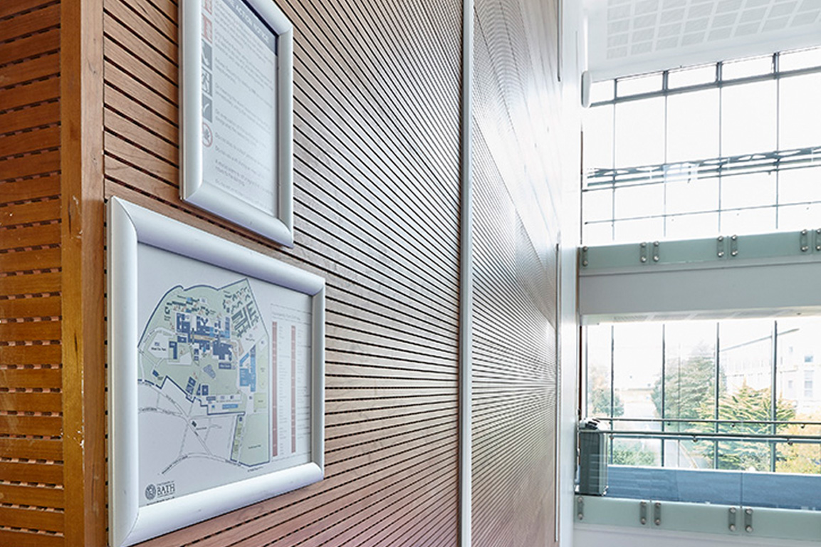 - Revestimiento acústico de madera: son paneles de madera con perforados que aportan la absorción de sonido que una sala puede necesitar para una correcta acústica. Más información sobre paneles acústicos de madera en Spigoacustic.